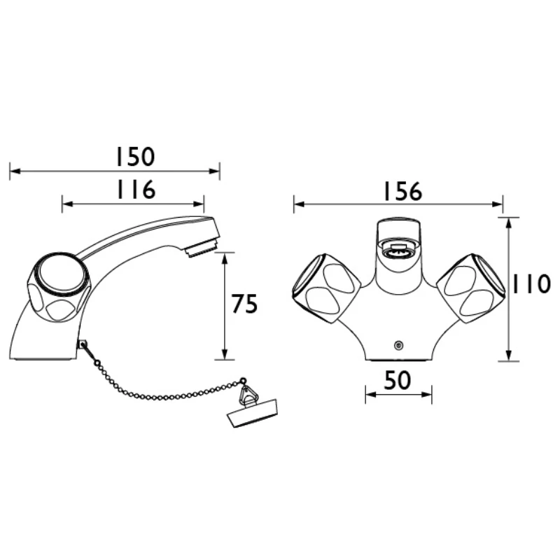 - Name Bristan Club Basin Mixer With Plug And Chain – Chrome (VAC BASNW C MT)