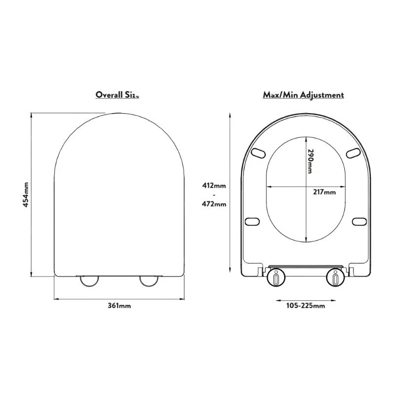 Installation is extremely easy with the option to install from above or below. Simply assemble both the hinges onto the pan, position the seat onto the hinges and tighten the bolts. For a stylish finish, polished hinge covers clip into place and cover the fixing mechanism.