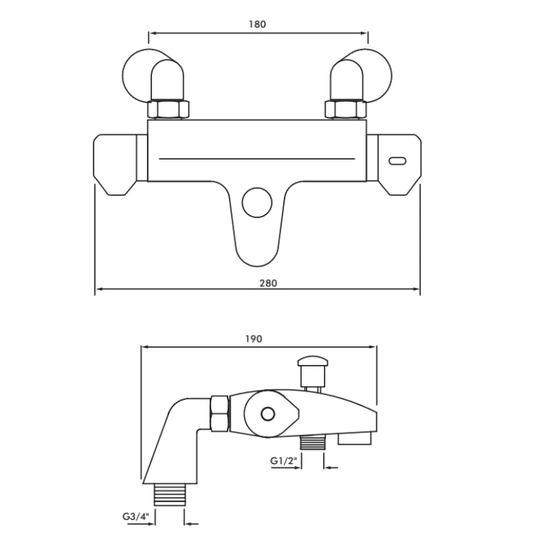 Inta Plus Thermostatic Bath Mixer Shower – Chrome.