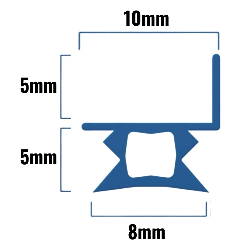 - Soft rubber seal designed to push into a trough or recess in a shower door frame