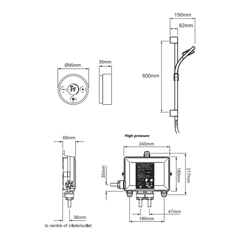 - Digital mixer unit can be installed/hidden away in a different location, adding to the elegance of the shower.