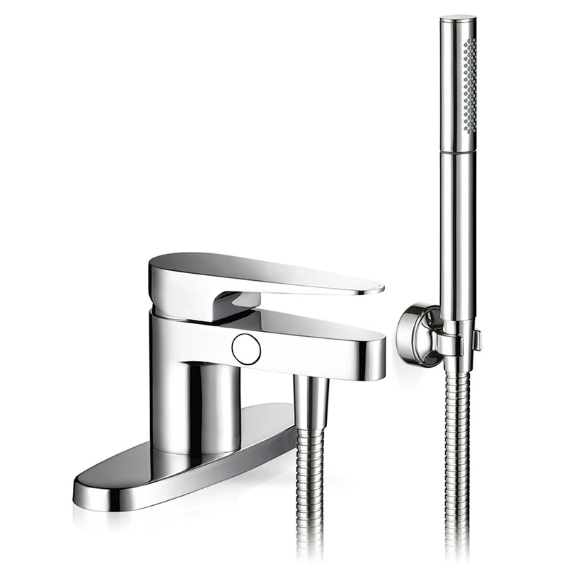 - Push the button on the spout to easily divert between the top and the 2 spray handshower.