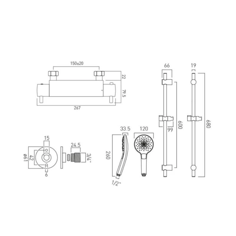 - Exposed round thermostatic 3/4″ shower valve
